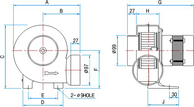 Quạt thổi cung cấp không khí áp suất cao, Vỏ bên ngoài được gia cố với độ bền cao (nhôm D / C)