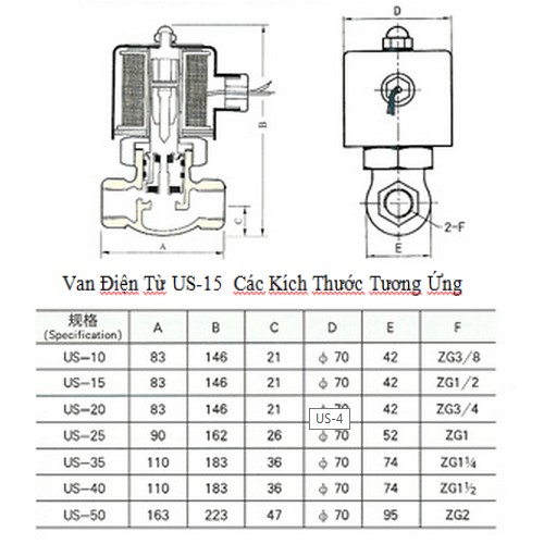 Thông số kỹ thuật: Van điện từ UNID US-15